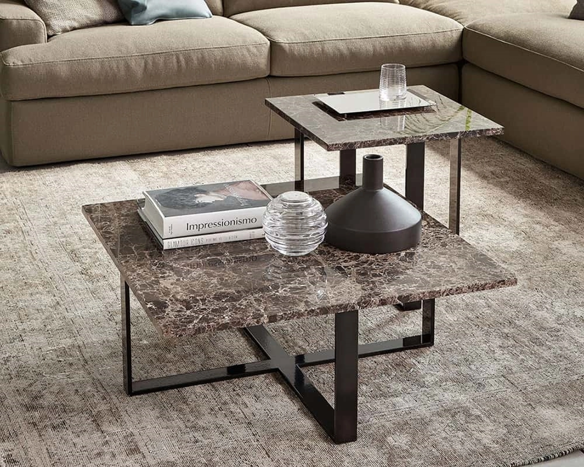 Complementi design e tavolini in marmo: scopri di più sul modello Heathrow di Rosini Divani e potrai completare i tuoi spazi.