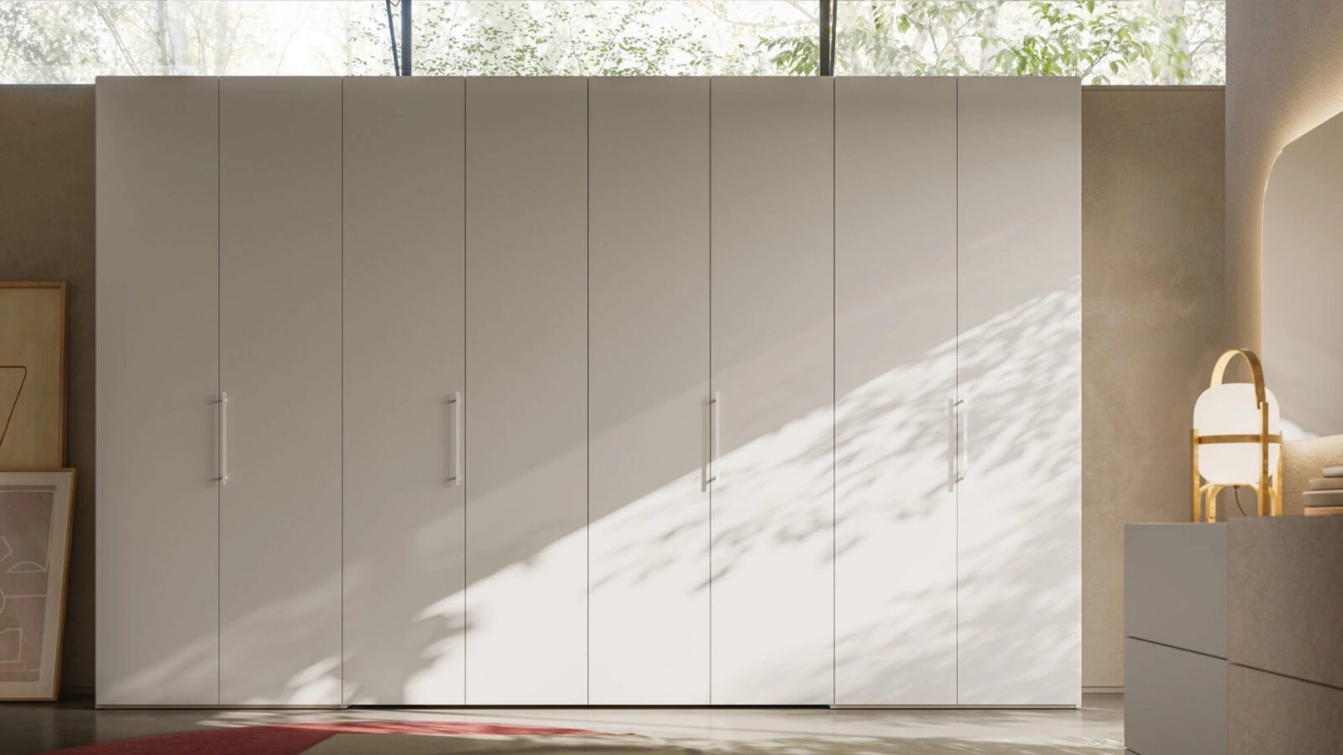 Gli Armadi e le cabine armadio con ante battenti devono arredare la camera da letto assicurandoti una perfetta organizzazione degli spazi e un'esclusiva ricerca estetica. Contattaci per info e preventivi e potrai ultimare la zona notte che hai sempre desiderato grazie ad una diversificata varietà di contenitori moderni come questo armadio in melaminico nella fotografia. La zona notte è dedicata al riposo, deve dunque risultare arredata con gusto e completa di mobili e complementi capaci di ricreare un'atmosfera sempre rilassante. Armadio con anta battente Liscia + M 14 + cabina Alea 37 di Orme: compila il form, contattaci e dai vita alla stanza del relax come l'hai sempre immaginata.