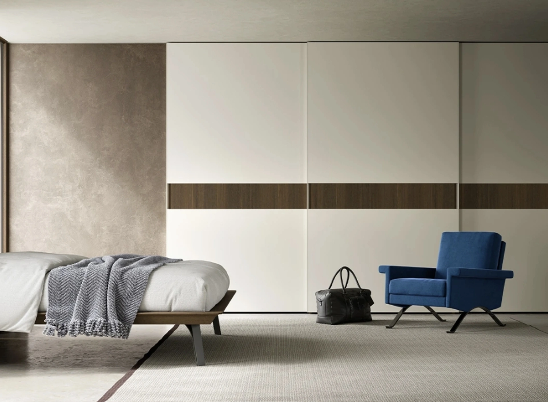 Ecco qui l'armadio Meridian in laccato opaco di Sangiacomo! Un ricco catalogo di armadi a muro con ante scorrevoli.
