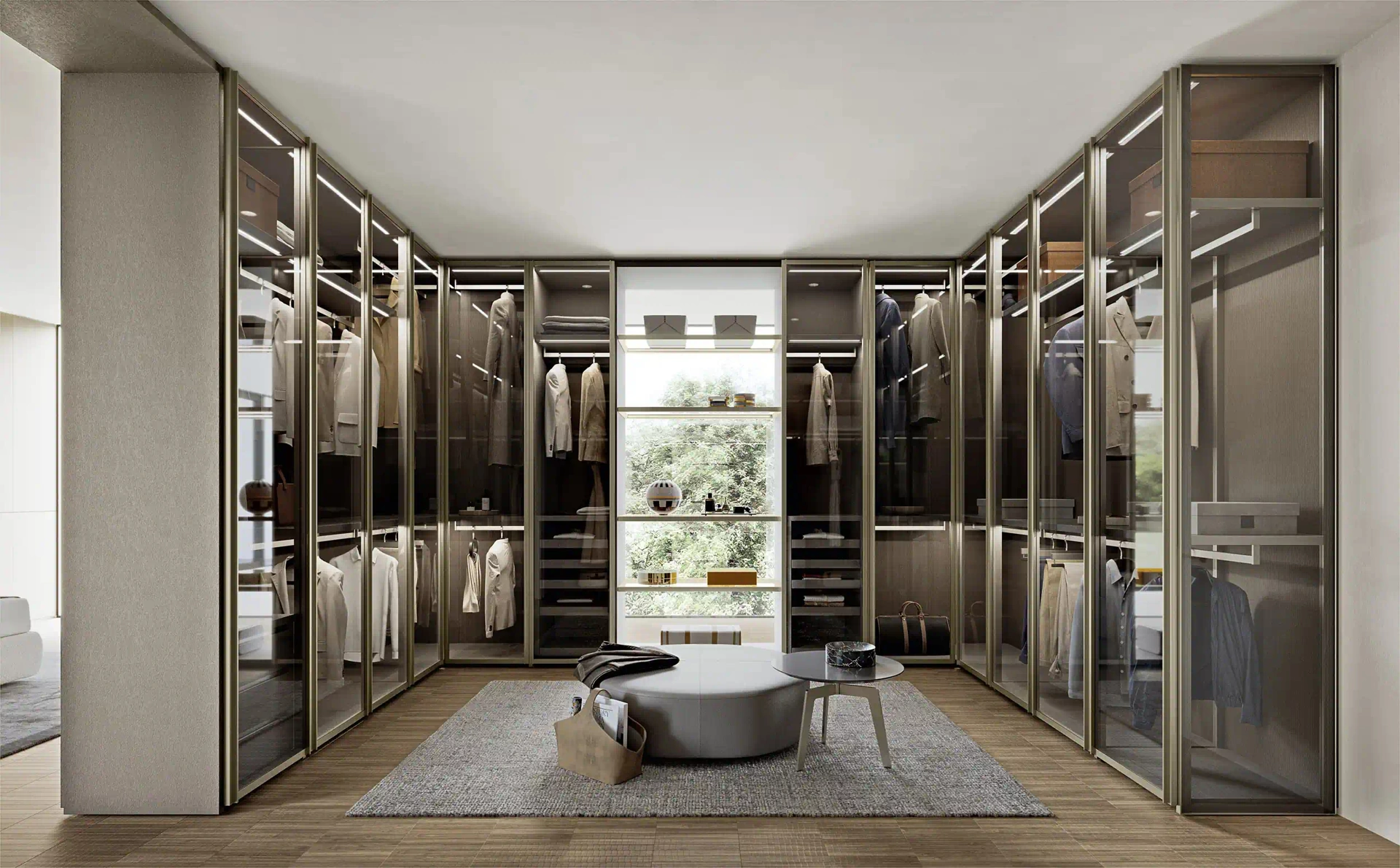 Se cerchi armadiature cabine armadio con ante battenti, clicca e scopri l'armadio Scrigno Cabina Armadio di Sangiacomo in vetro.