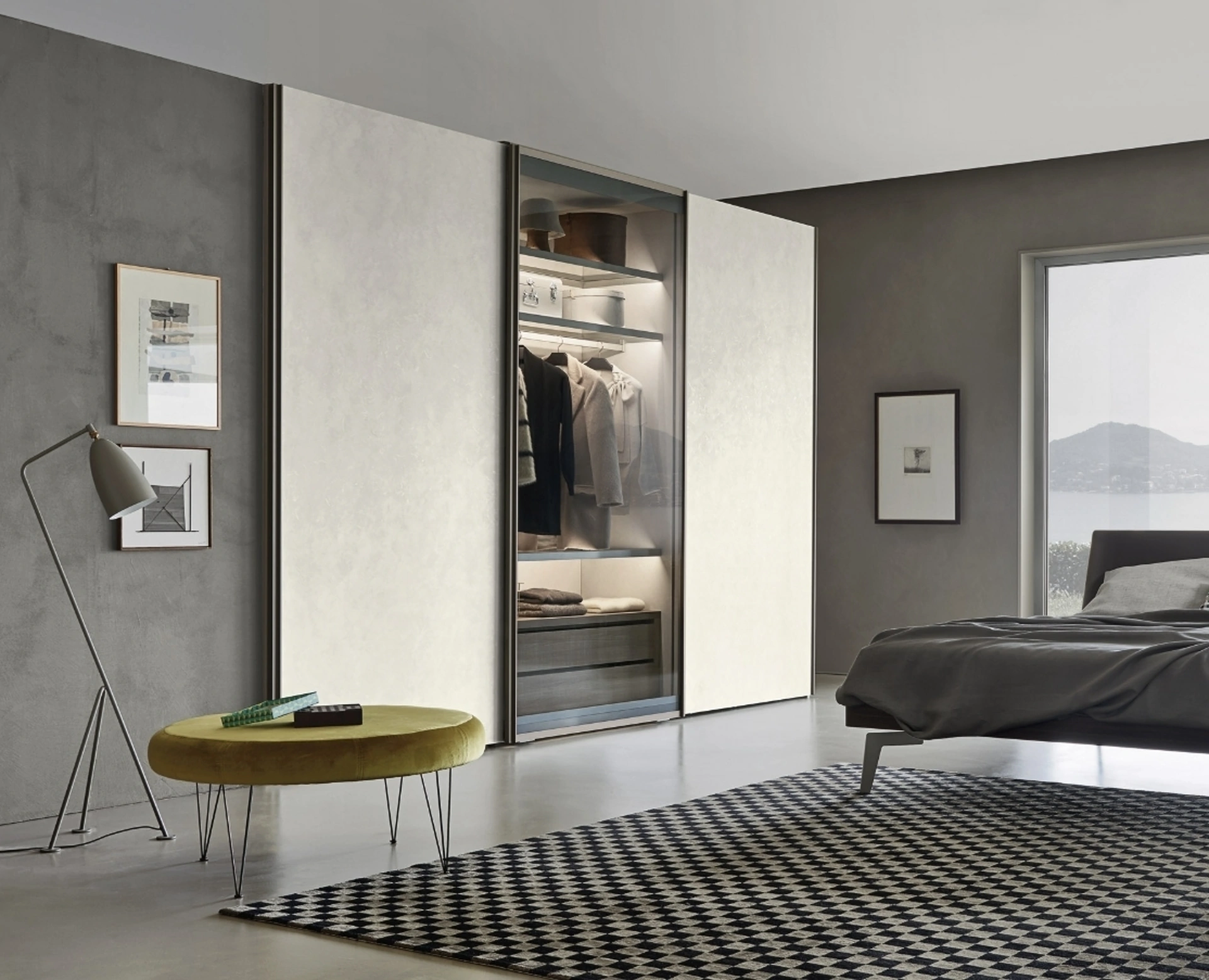 Se vuoi una zona notte arredata al meglio, scegli l'armadio Scrigno Materico Scorrevole con ante scorrevoli di Sangiacomo!