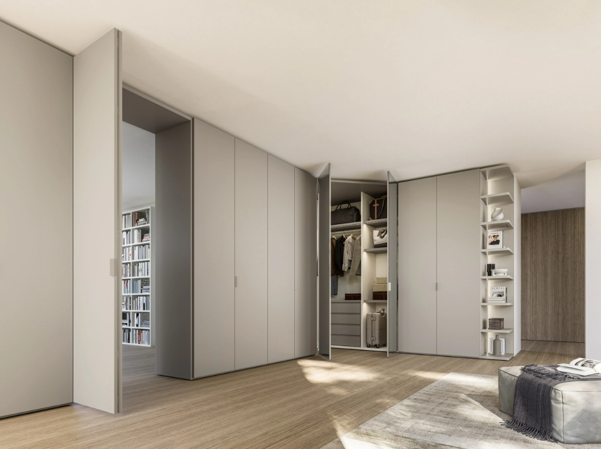 Cerchi un'armadiatura in laccato opaco? Clicca e scopri armadiature ad angolo con ante battenti di Sangiacomo.