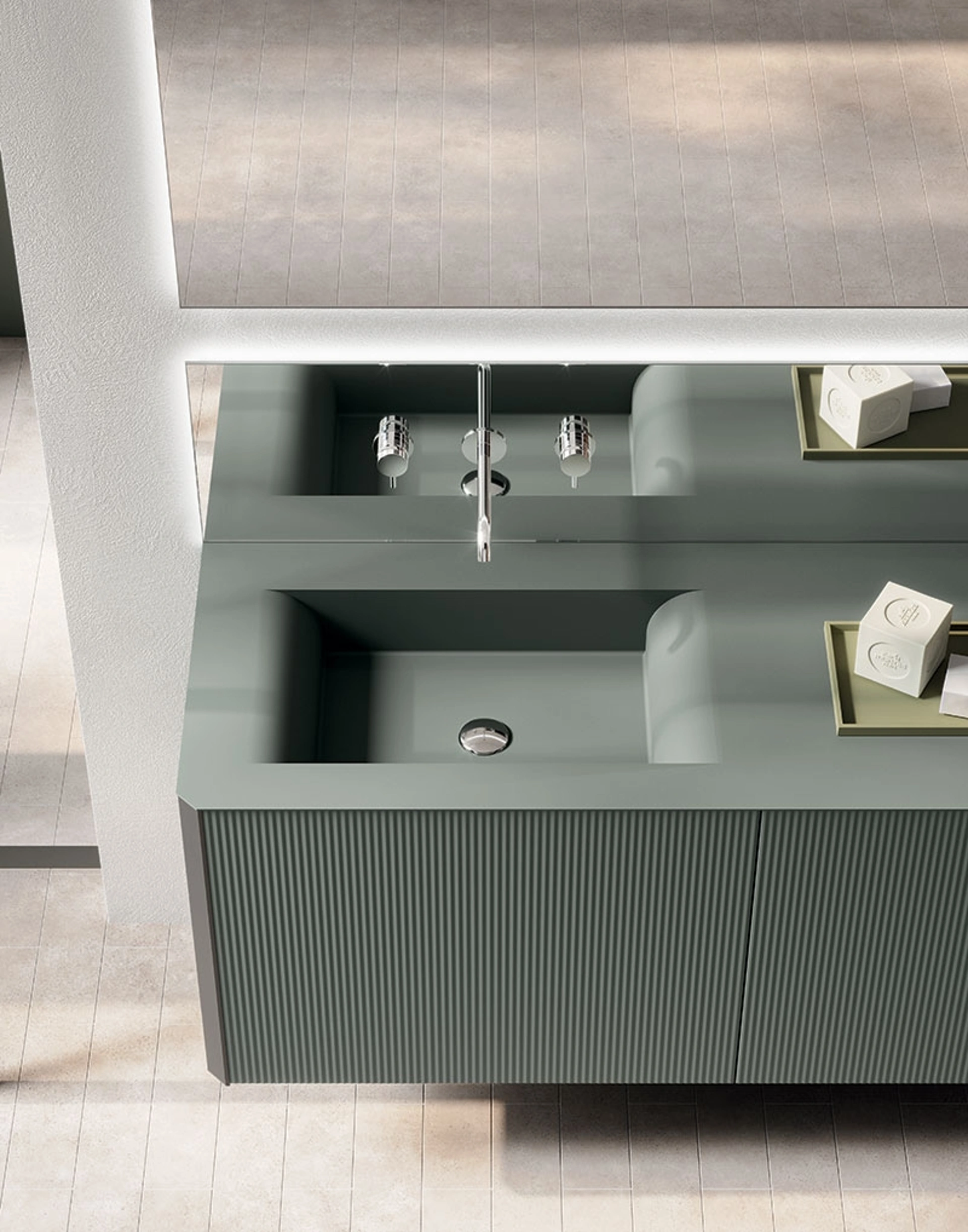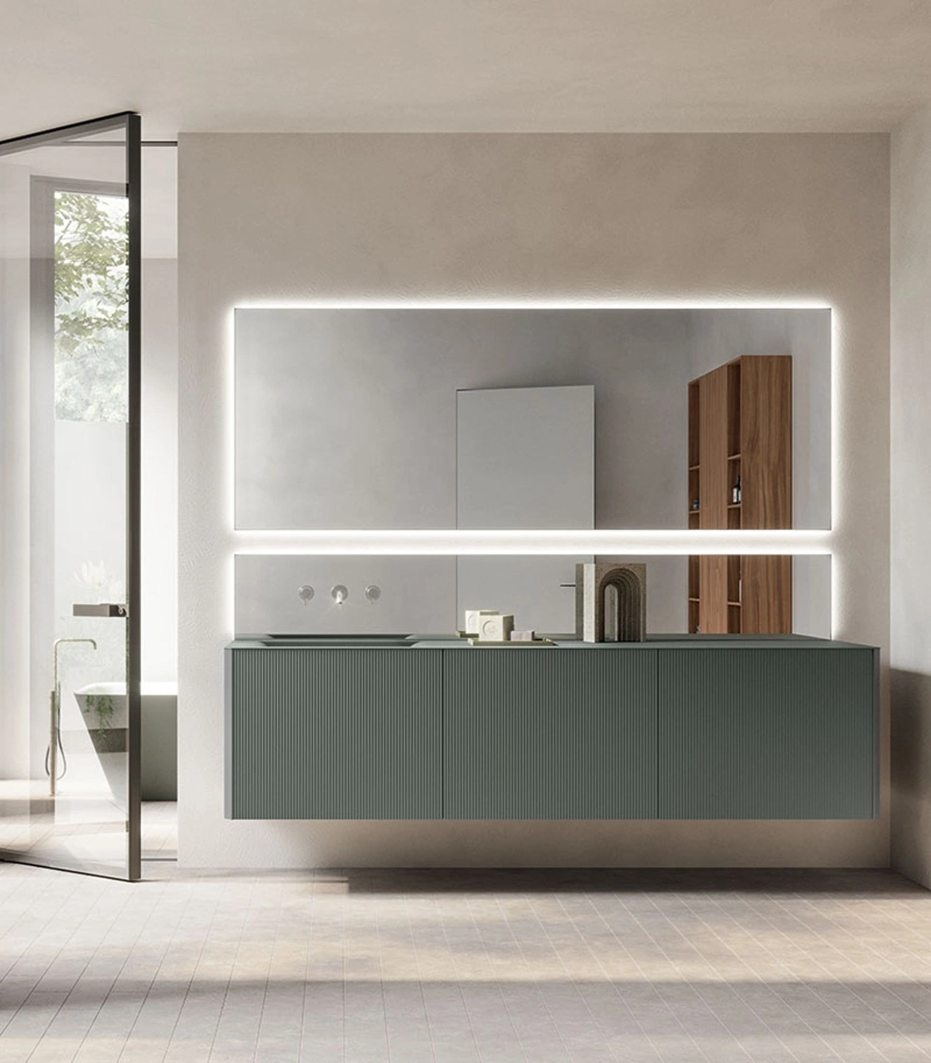 mobili bagno sospesi in laccato opaco del marchio Cerasa: clicca e scopri l'arredo bagno moderno Honey 02 per il tuo bagno.
