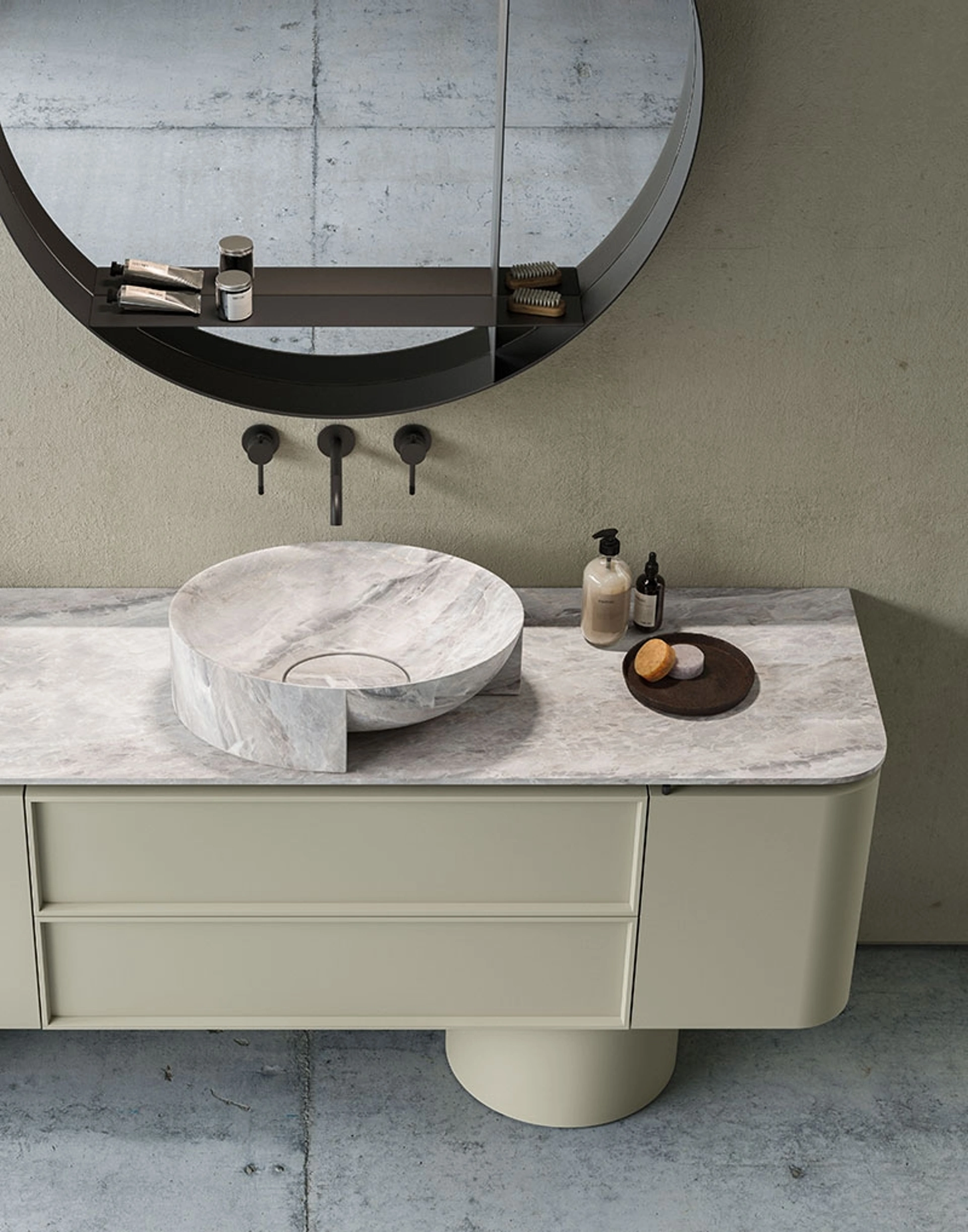 Arreda il bagno di casa design alla perfezione con Des Evolution Natural 02, mobili bagno a terra e oggetti in laccato opaco di Cerasa.