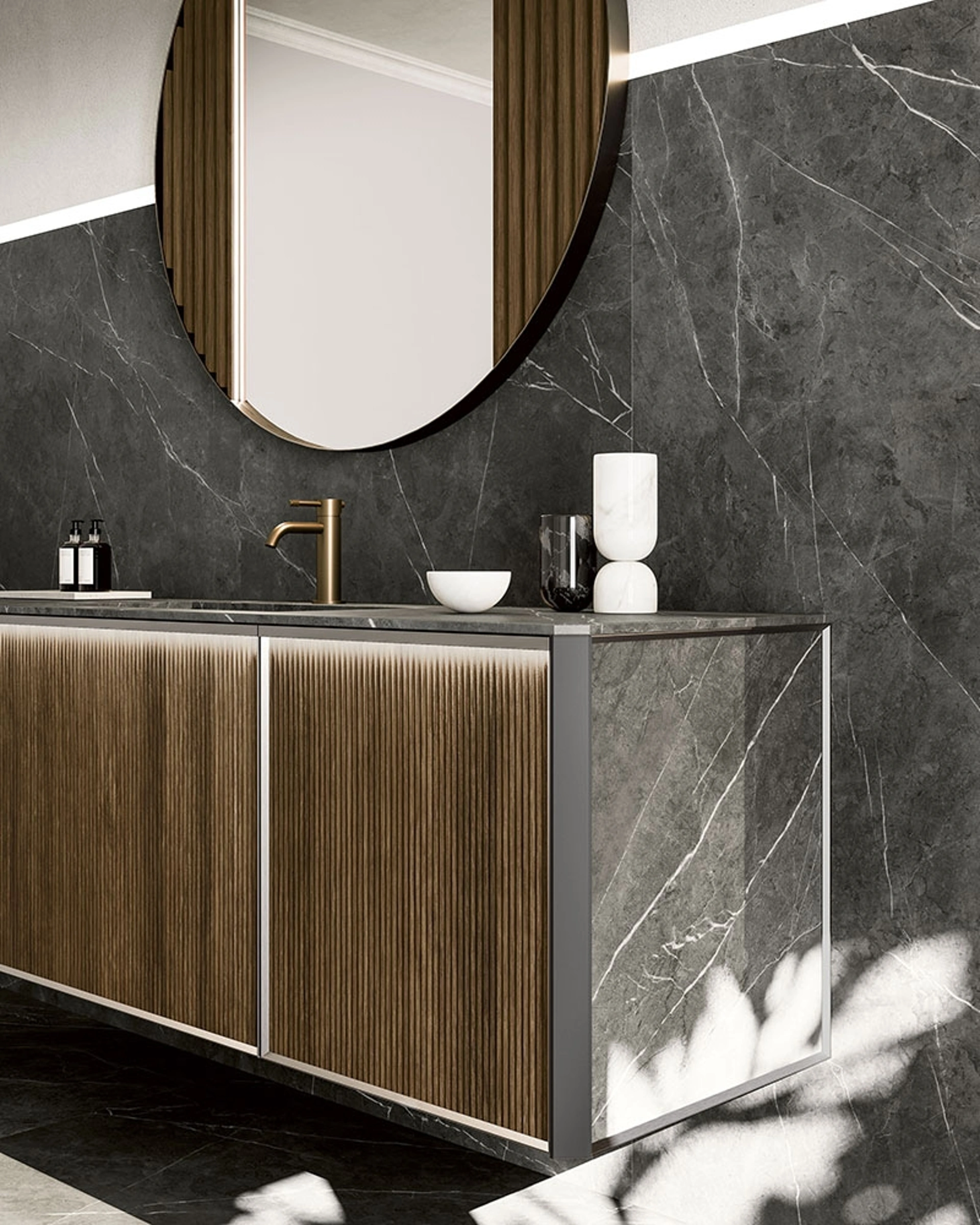 Arreda il bagno di casa design perfettamente con Honey 03, mobili bagno sospesi e oggetti in legno di Cerasa.