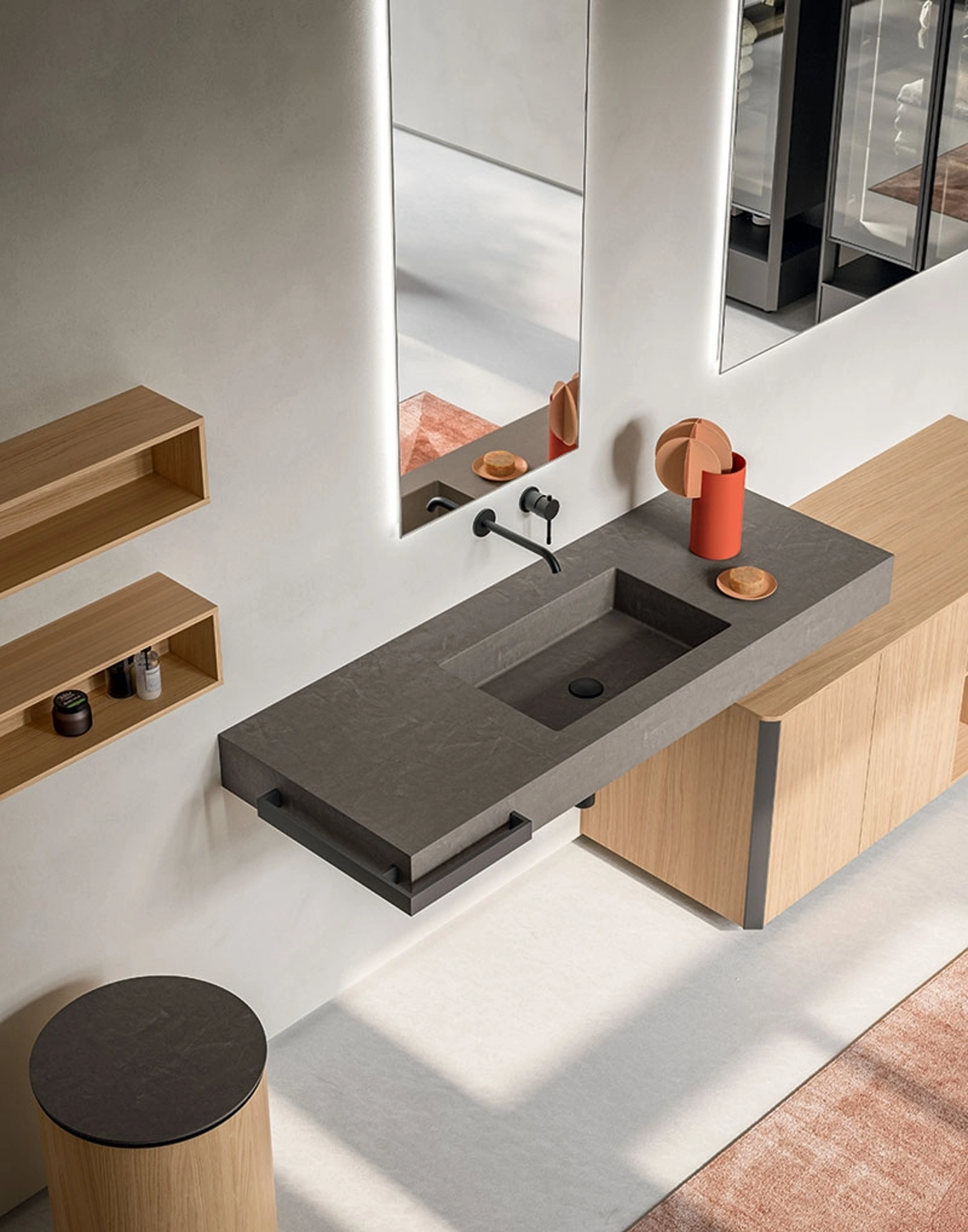 mobili bagno a terra in legno del brand Cerasa: clicca e scopri l'arredo bagno design Honey 04 per la stanza del benessere.