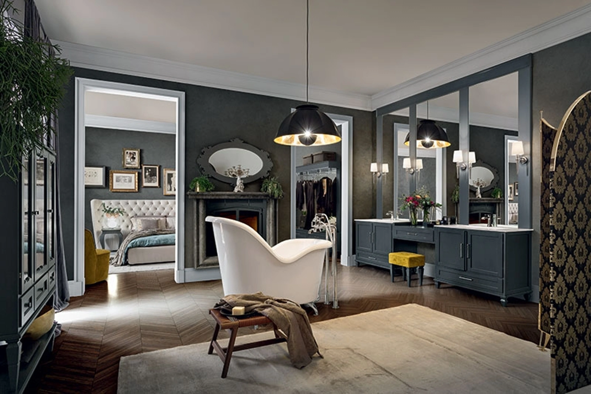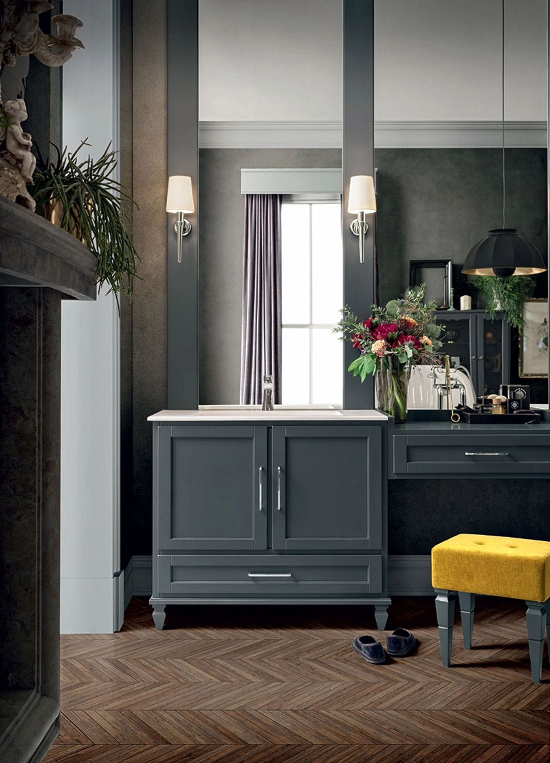 Arreda il tuo bagno classico alla perfezione con York 02, mobili bagno a terra e oggetti in laccato opaco di Cerasa.