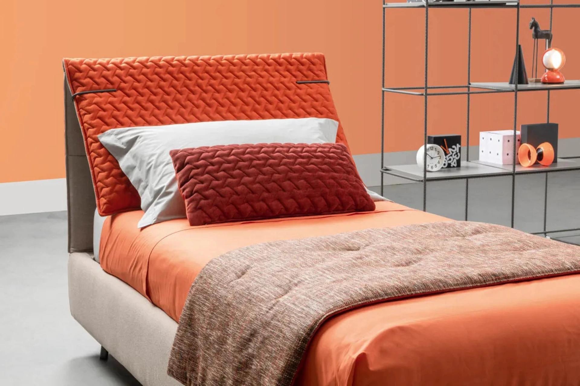 Se vuoi letti singoli imbottiti, eccoti il modello Spin in tessuto per completare la stanza dei più piccoli.