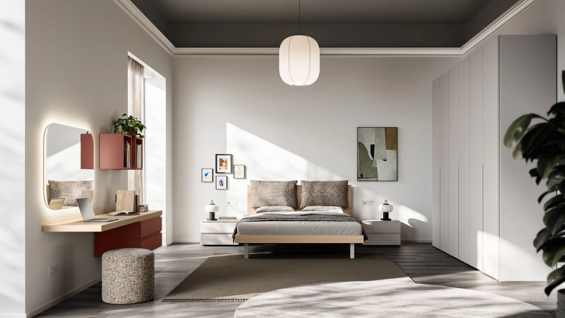 Vuoi progettare la camera da letto? Eccoti il letto in melaminico Cremi Night 01 di Orme per spazi moderni.