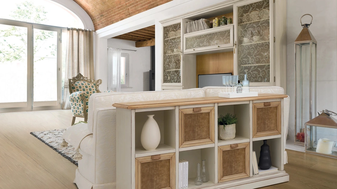 Vuoi rinnovare la zona giorno? Scopri di più sulle librerie classiche divisorie e arreda i tuoi locali con il modello Amanda.