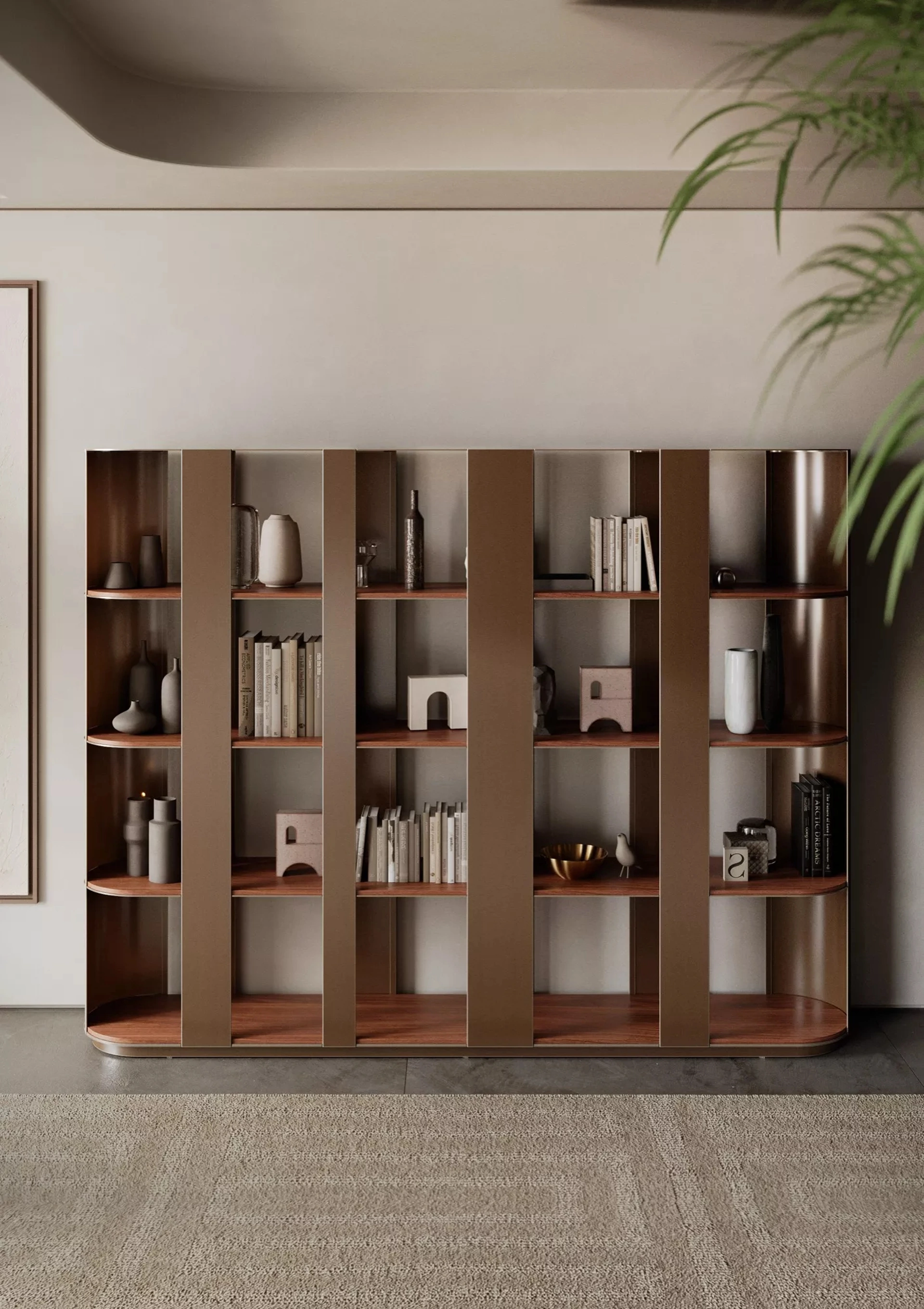 Finiture di pregio e forme decise: scopri la libreria Helena di Bontempi tra le più esclusive Librerie design divisorie.