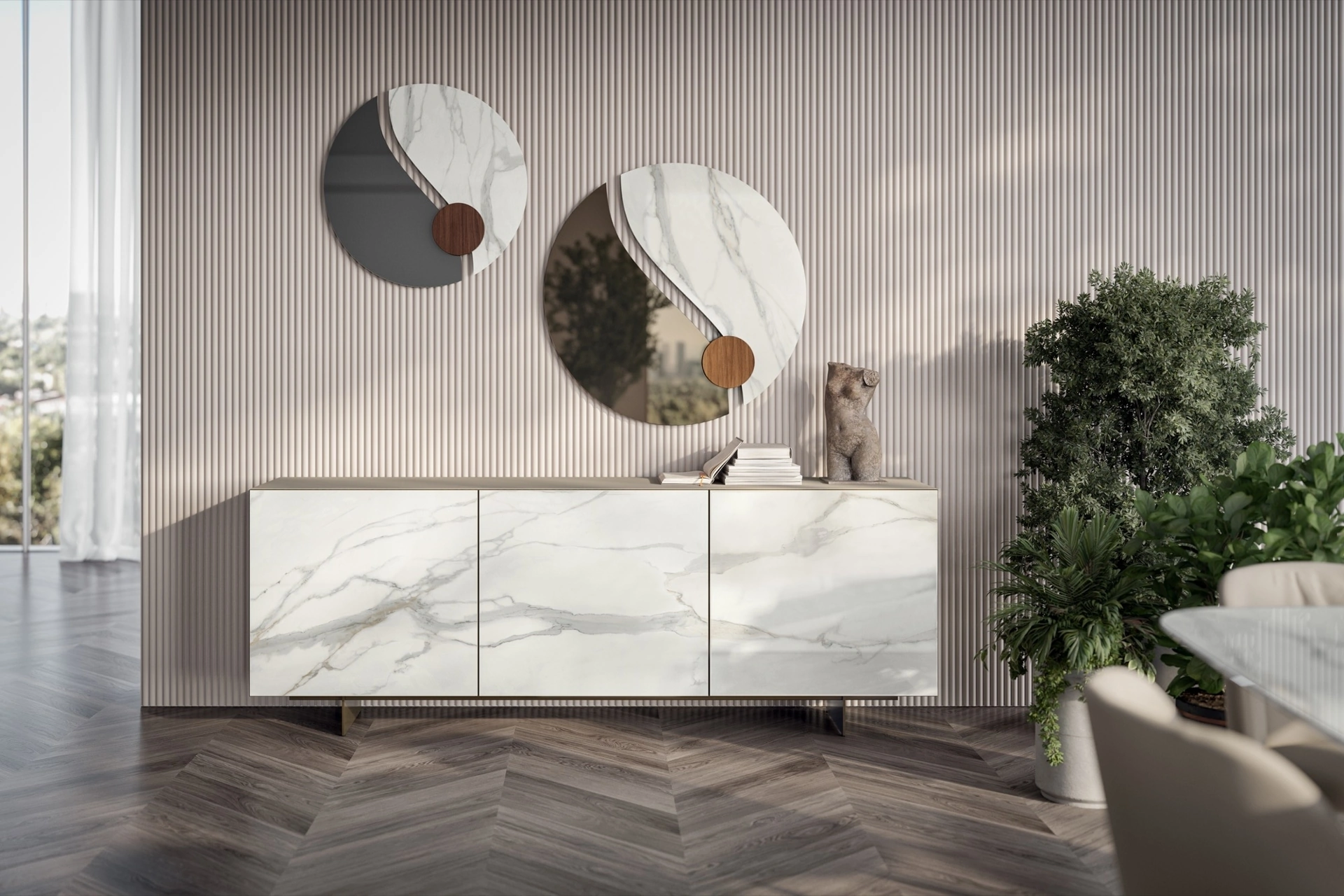 Arreda un soggiorno operativo e pratico con questa madia Olympia di Bontempi: scopri le più belle Madie in gres.