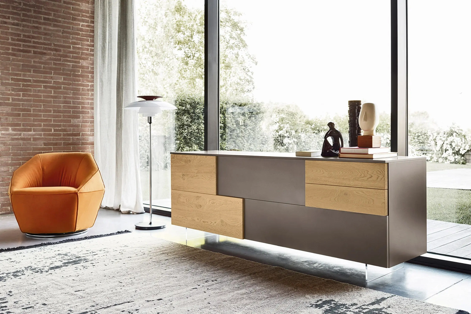 Arreda un living operativo e pratico con questa madia Incontro 06 di Sangiacomo: scopri le più esclusive Madie in laccato opaco.