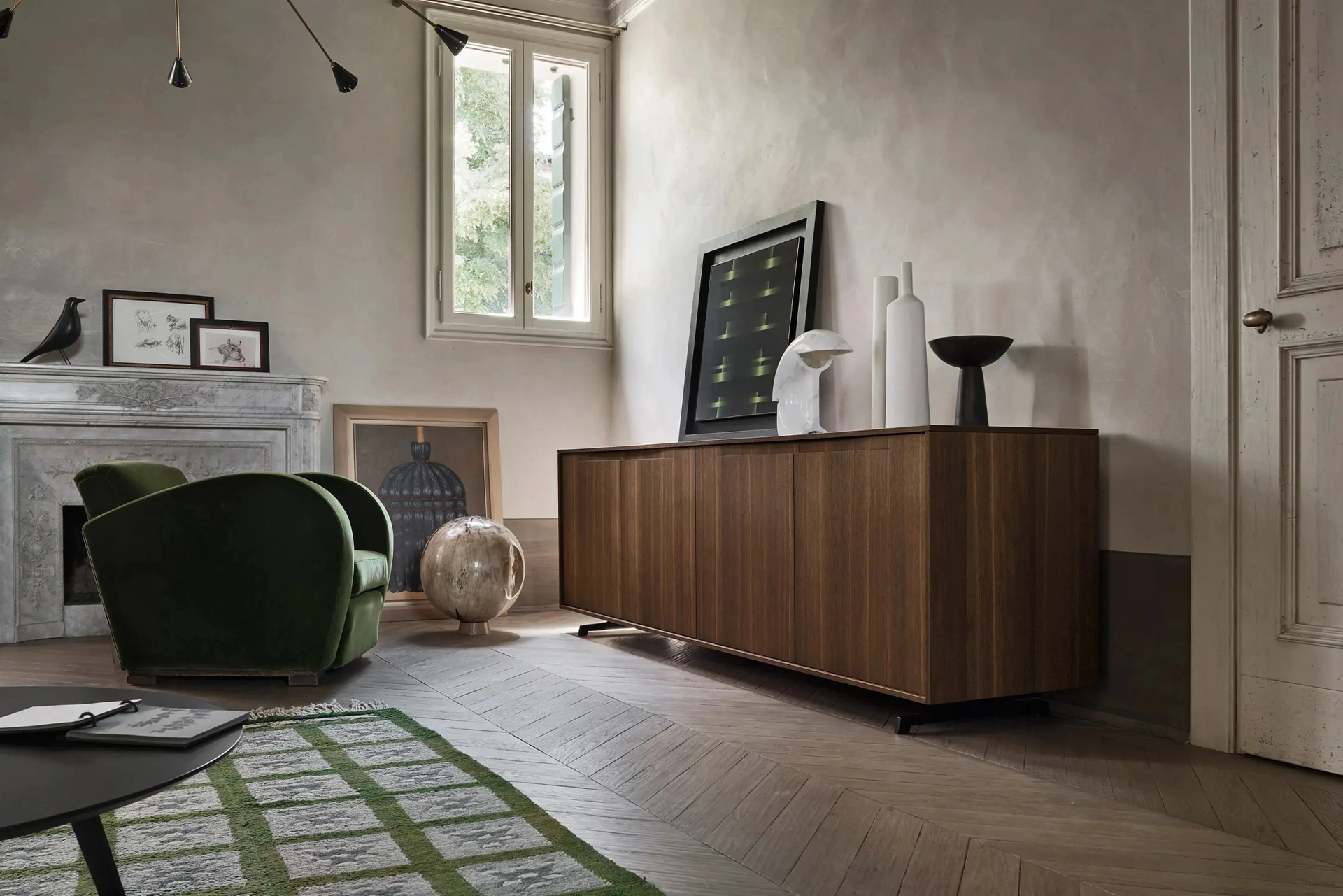 Arreda un living dinamico e operativo con questa madia Vela 04 di Sangiacomo: scopri le più esclusive Madie in legno.