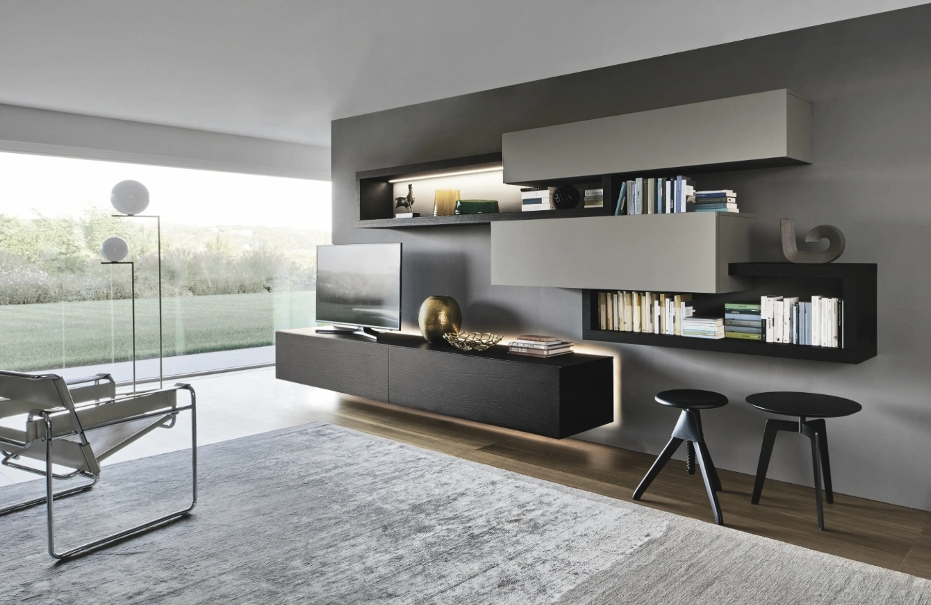 I mobili soggiorno in legno dalle linee moderne come il modello in foto sono veramente eclettici e capaci di progettare il soggiorno sfruttando bene ogni angolo. Poiché il soggiorno deve essere uno spazio agevole e bello a vedersi, sono necessari alcuni arredi belli e funzionali come le Pareti Attrezzate. La Parete Attrezzata Lampo 046 di Sangiacomo in foto è una tra le più originali soluzioni d’arredo sul mercato: grandi doti di componibilità e le varie opportunità di progettazione la rendono funzionale ed esteticamente gradevole. Lasciati affascinare da un ricco catalogo di arredi per la zona giorno e troverai la parete attrezzata che fa al caso tuo.