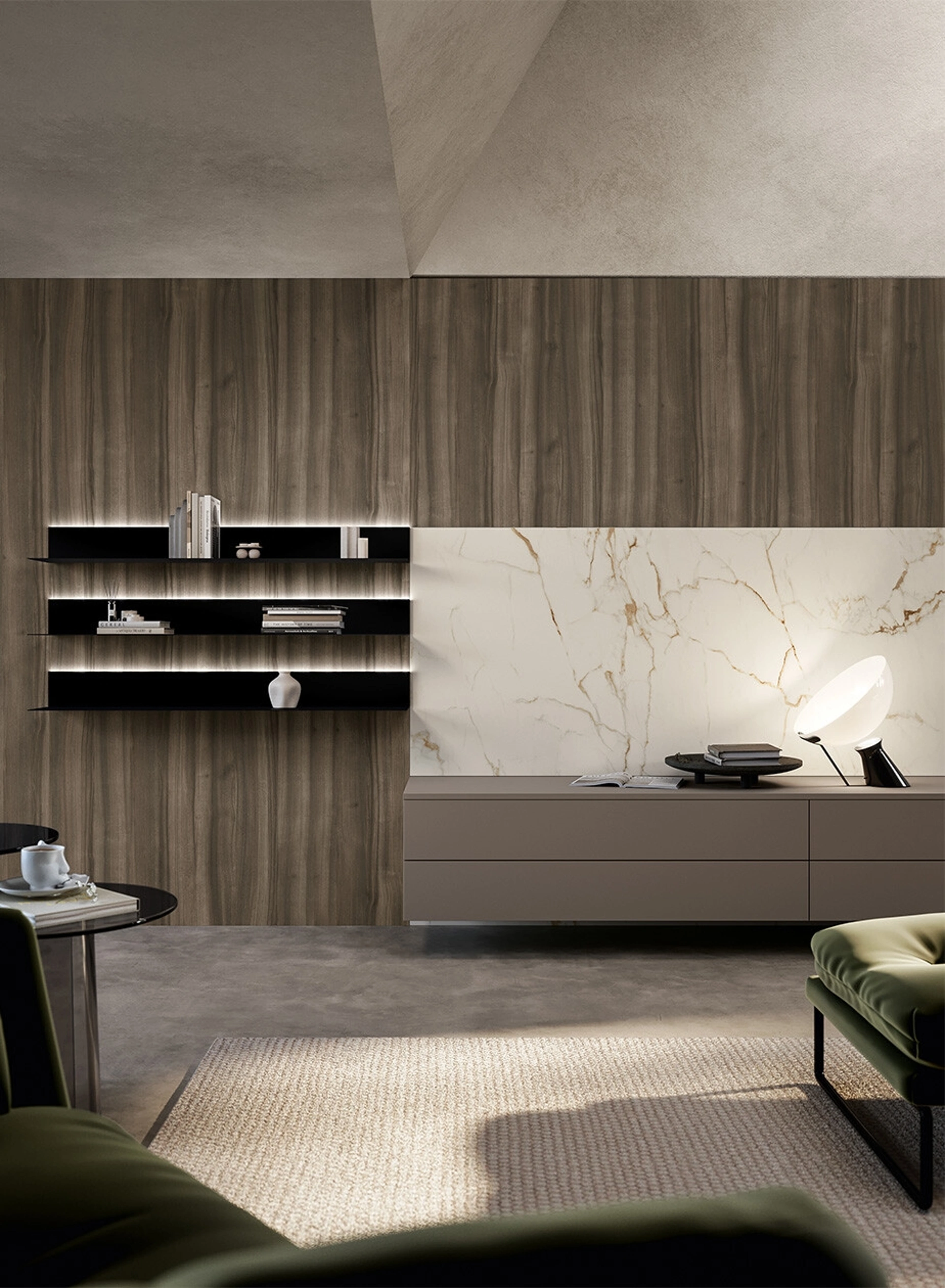 Pareti attrezzate e mobili soggiorno Arredo3: clicca e scopri il modello Living Cloe e potrai arricchire stanze moderne di ogni genere.