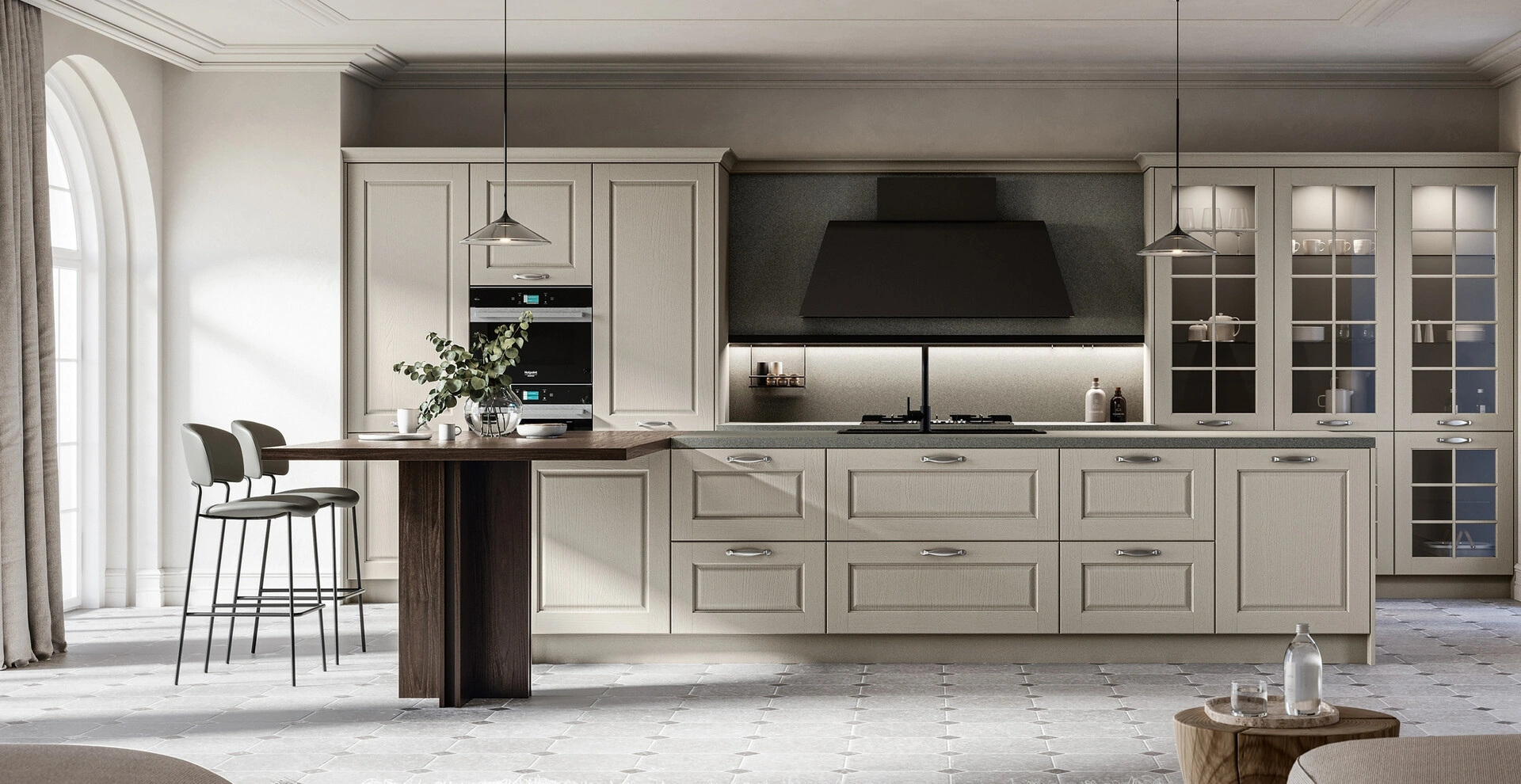 Scegli la cucina Asolo 03: le soluzioni classiche Arredo3 in laccato opaco sono sinonimo di qualità, stile e design.