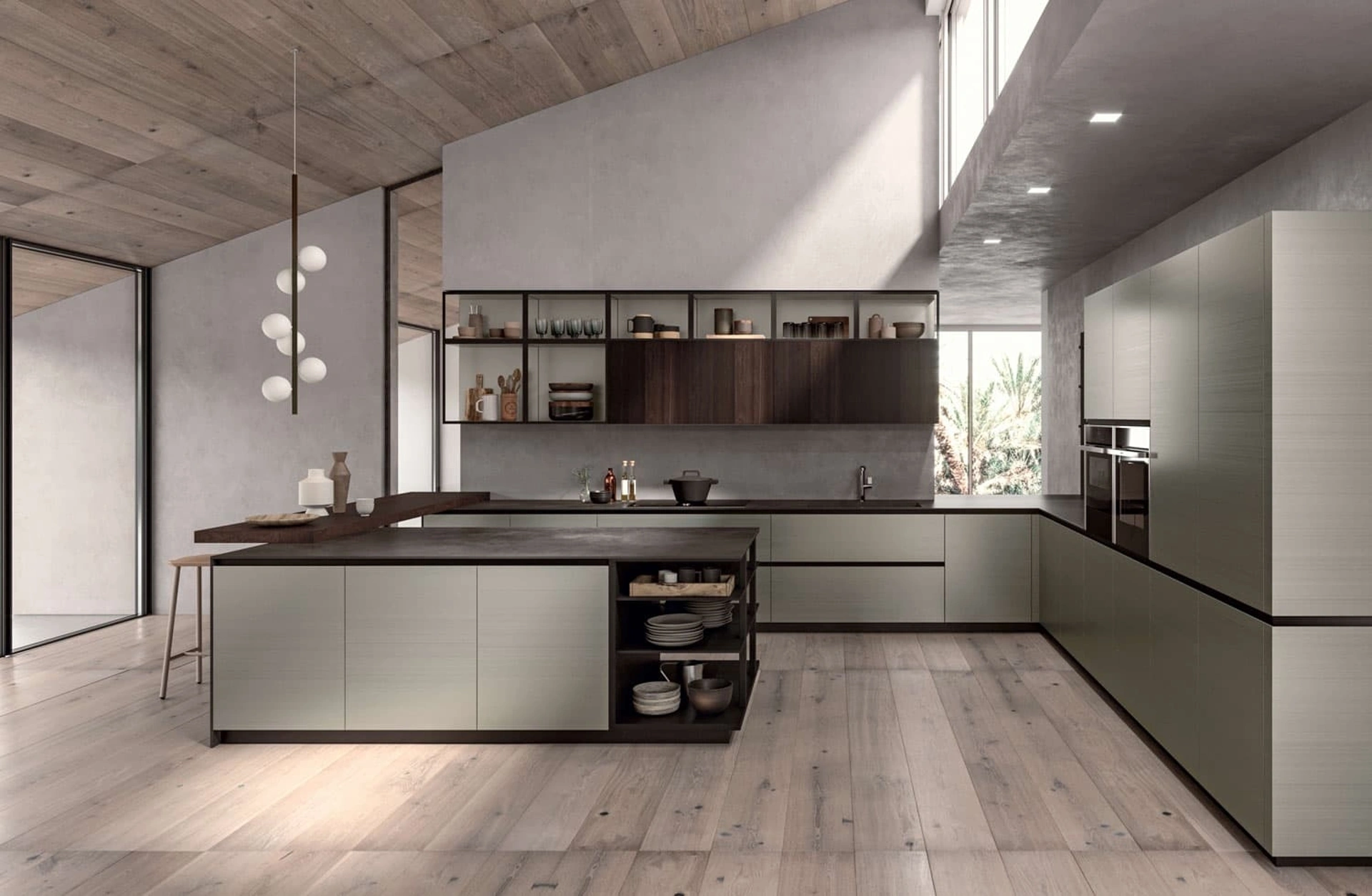 Clicca e scopri un universo di Cucine Moderne con penisola: la cucina Area 22 Job Dibiesse in laccato opaco ti sta aspettando!