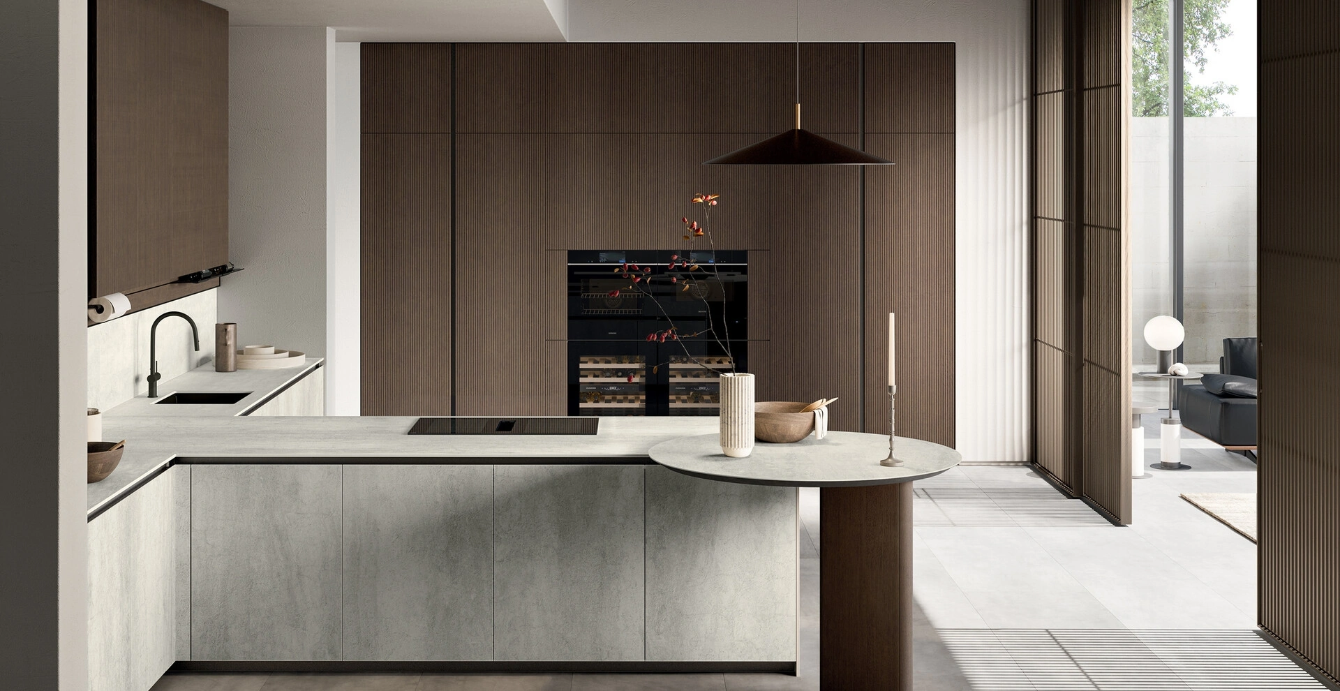 Clicca e scopri un mondo di Cucine Moderne con penisola: la cucina Glass 2|0 06 Arredo3 in gres ti aspetta!
